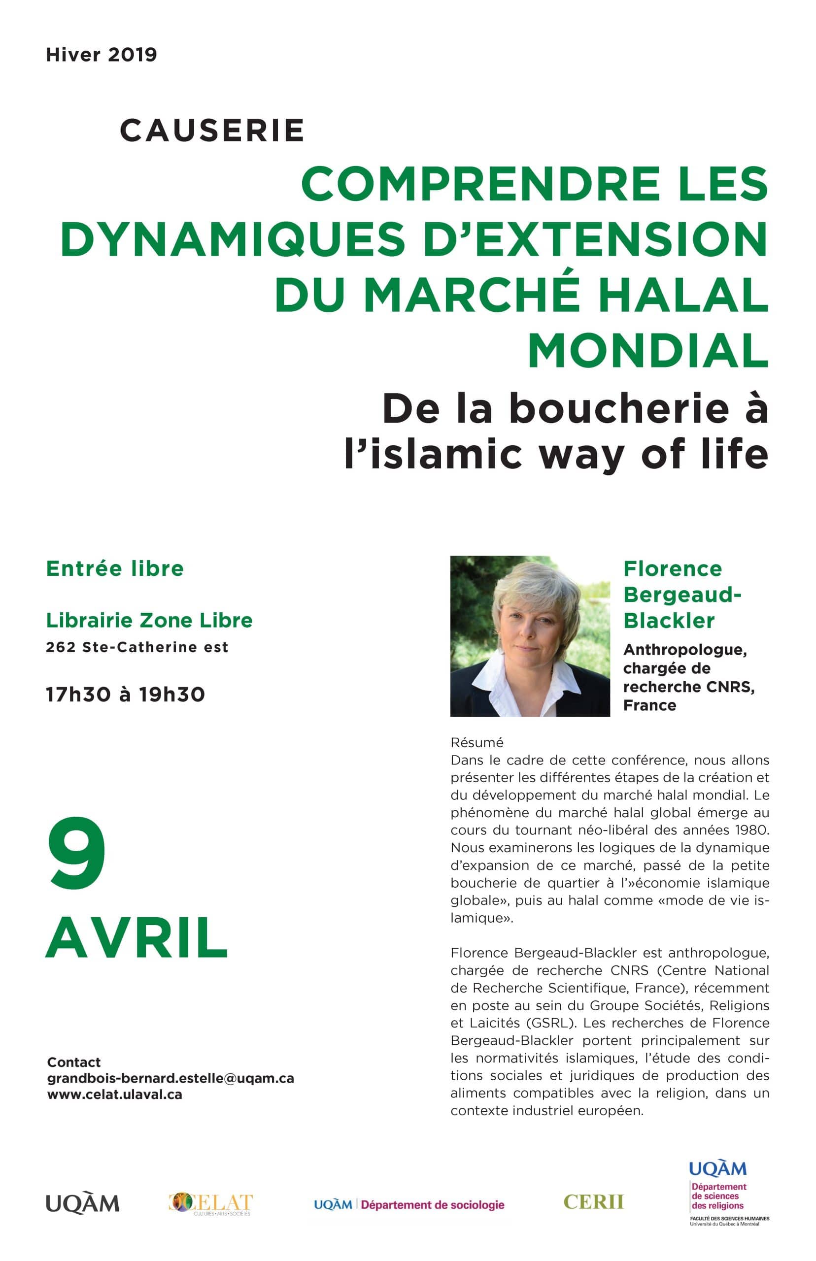 Florence Bergeaud-Blackler est anthropologue, chargée de recherche CNRS (Centre National de Recherche Scientifique, France), récemment en poste au sein du Groupe Sociétés, Religions et Laicités (GSRL). Ses recherches portent principalement sur les normativités islamiques, l’étude des conditions sociales et juridiques de production des aliments compatibles avec la religion, dans un contexte industriel européen.