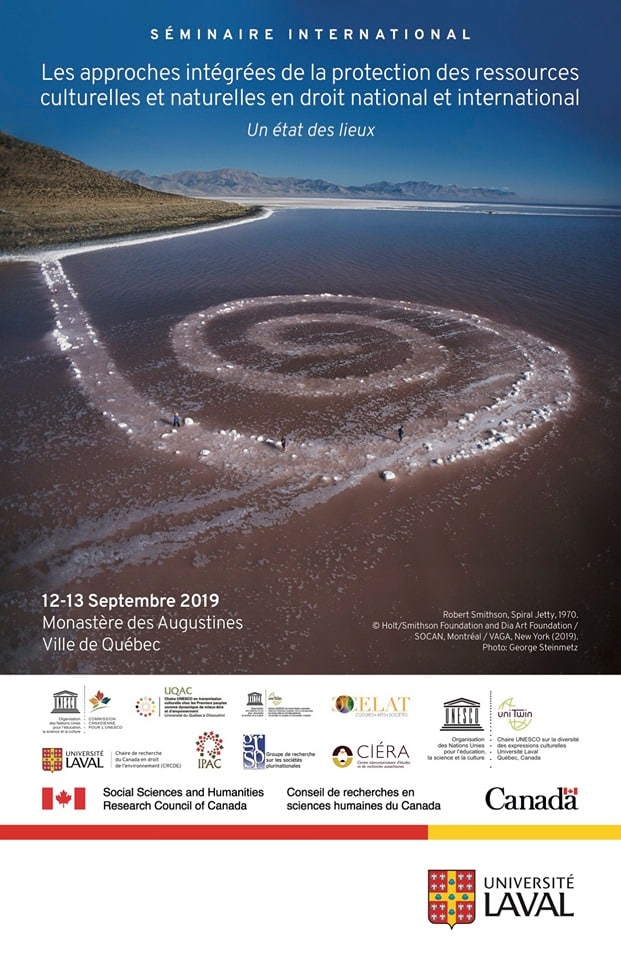 Organisé par la Chaire UNESCO sur la diversité des expressions culturelles de l’Université Laval, le Séminaire « Les approches intégrées de la protection des ressources culturelles et naturelles en droit national et international. Un état des lieux » se tiendra les 12 et 13 Septembre 2019 au Monastère des Augustines, en plein coeur du vieux-Québec.