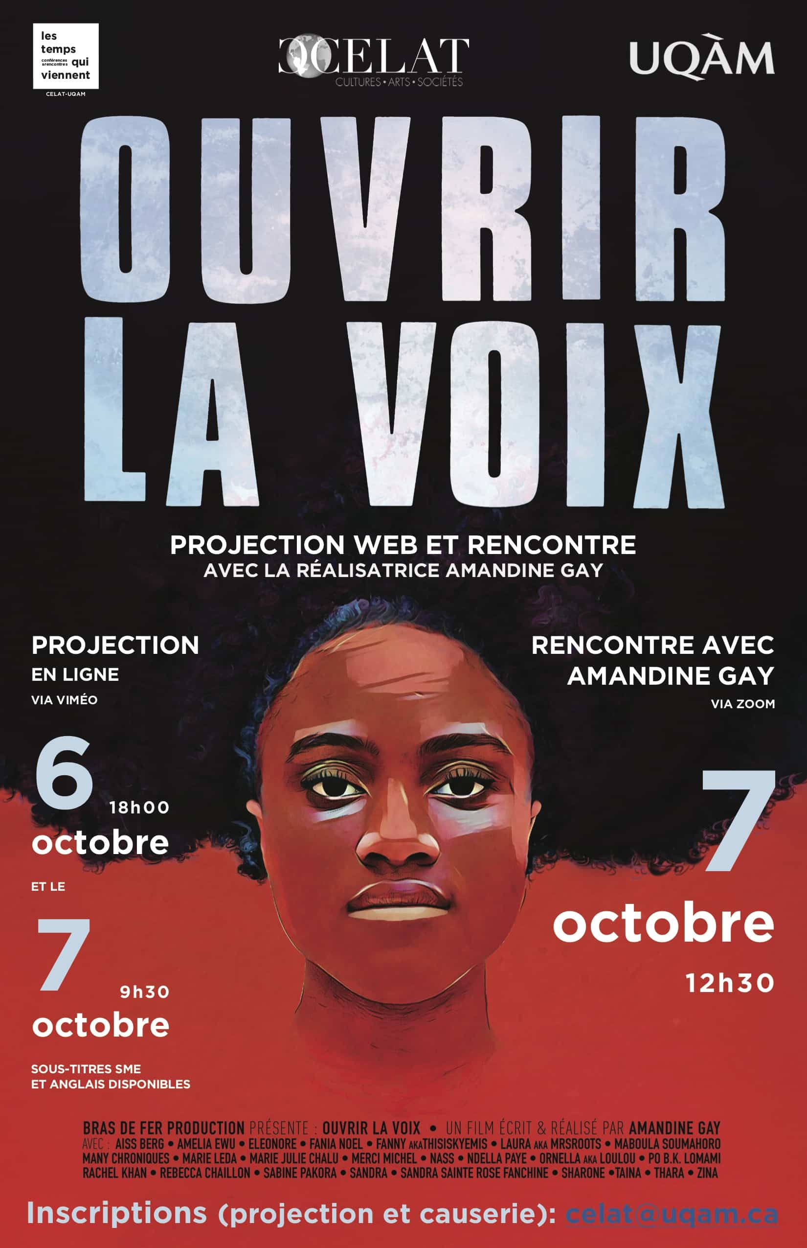 As part of the lecture series Les temps qui viennent – conférences & rencontres, the CELAT-UQAM presents an online screening of the documentary Ouvrir la voix (Speak Up) (english subtitles available), followed by a discussion with the director Amandine Gay.