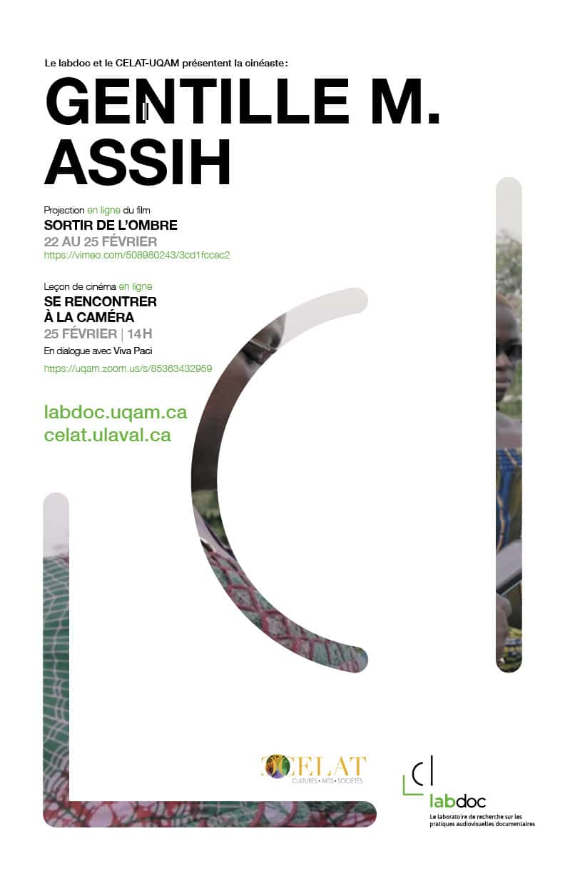 La leçon de cinéma de Gentille Assih, « Se rencontrer à la caméra », en dialogue avec Viva Paci, ouverte à toutes et tous, se tiendra le 25 février 2021, de 14h à 16h : https://uqam.zoom.us/s/85363432959
