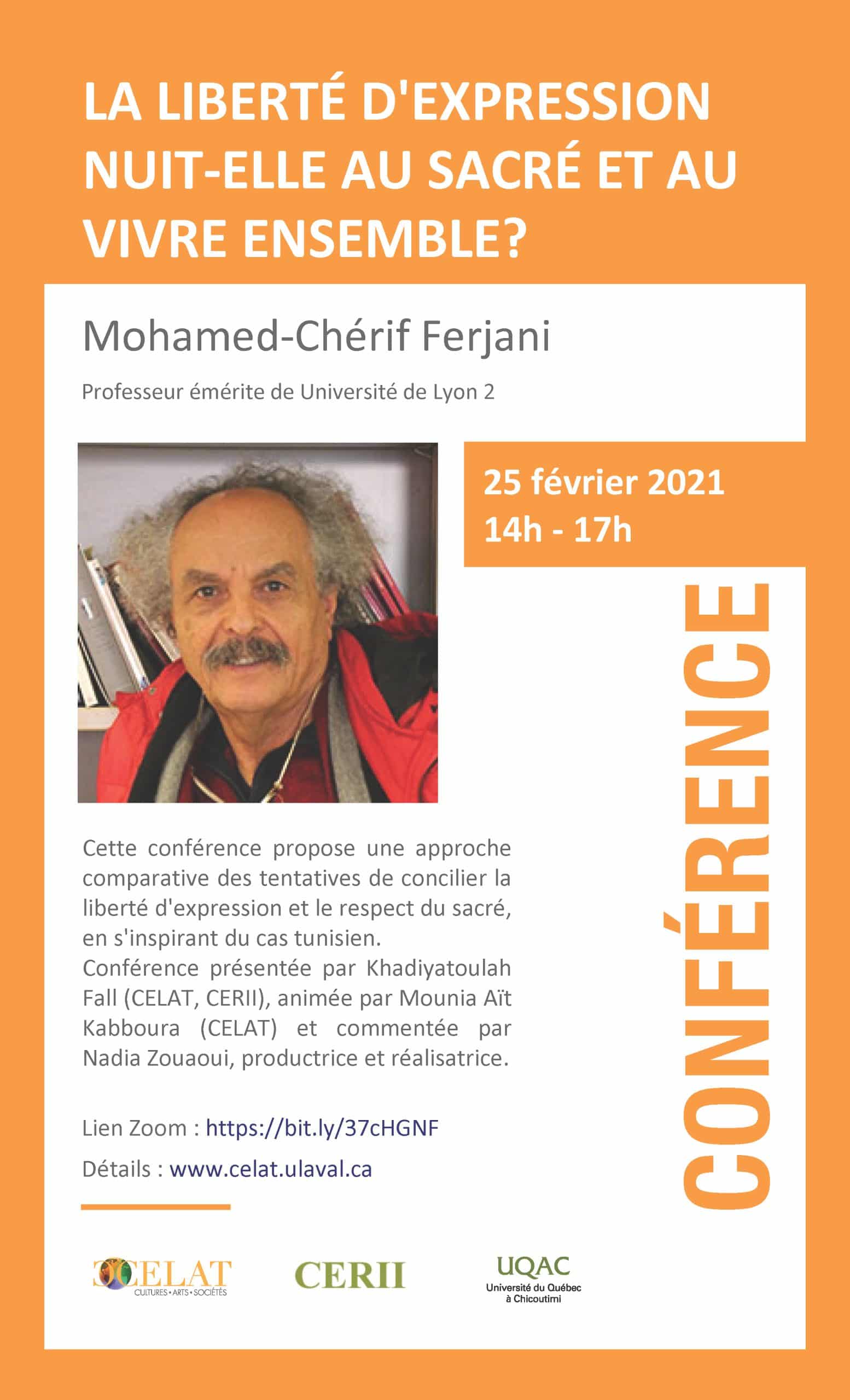 Mohamed-Chérif Ferjani propose une approche comparative des tentatives de concilier la liberté d’expression et le respect du sacré. Il montre comment la constitution tunisienne de 2014 a essayé de concilier ces deux exigences dans son article 6 en stipulant : « L’État est le gardien de la religion. Il garantit la liberté de conscience et de croyance, le libre exercice des cultes; il est le garant de la neutralité des mosquées et des lieux de culte par rapport à toute instrumentalisation partisane. L’État s’engage à diffuser les valeurs de modération et de tolérance, à protéger le sacré et à interdire d’y porter atteinte. Il s’engage également à l’interdiction et à la lutte contre les appels au takfir [accusations d’apostasie] et l’incitation à la violence et à la haine ». Le propos de cette intervention est de montrer, à travers l’expérience tunisienne et de ce qui se passe dans différents contextes du Nord et du Sud, les incohérences des défenseurs de la liberté d’expression et de ceux qui dénoncent les atteintes au sacré, et de voir dans quelle mesure il est possible de concilier ces deux exigences