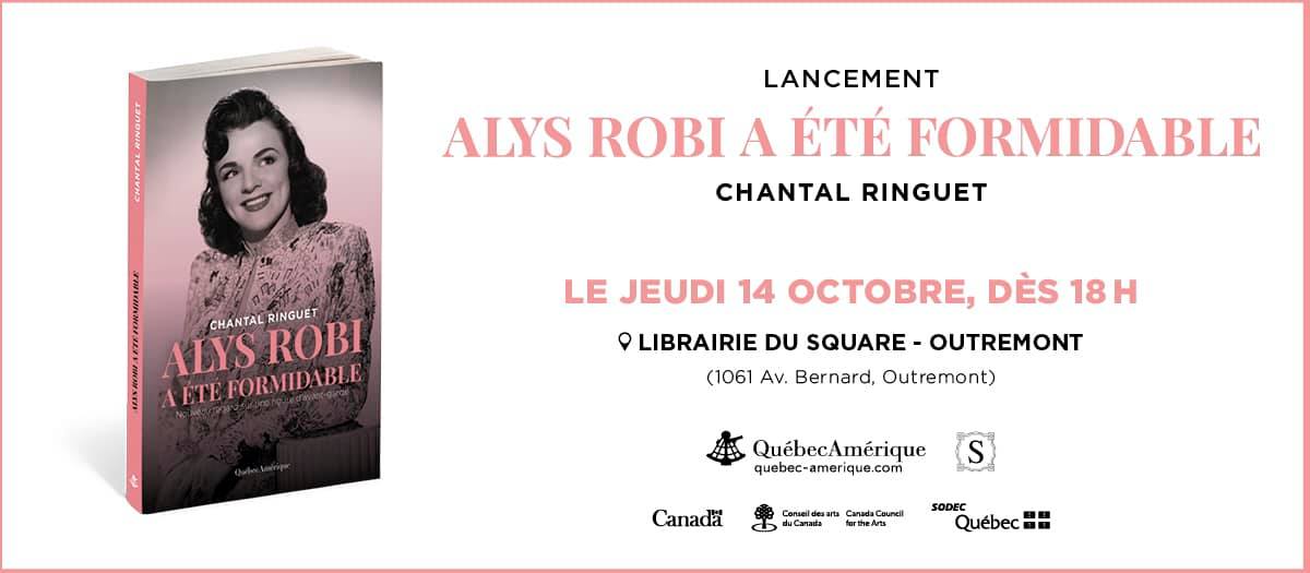 Chantal Ringuet, membre associée du CELAT, publie chez Québec Amérique le livre Alys Robi a été formidable, qui arrivera en librairie le 13 octobre 2021. Joignez-vous à l’autrice pour célébrer le lancement de l’ouvrage à la librairie du Square à Outremont le jeudi 14 octobre dès 18 h. Réservez votre billet ici.