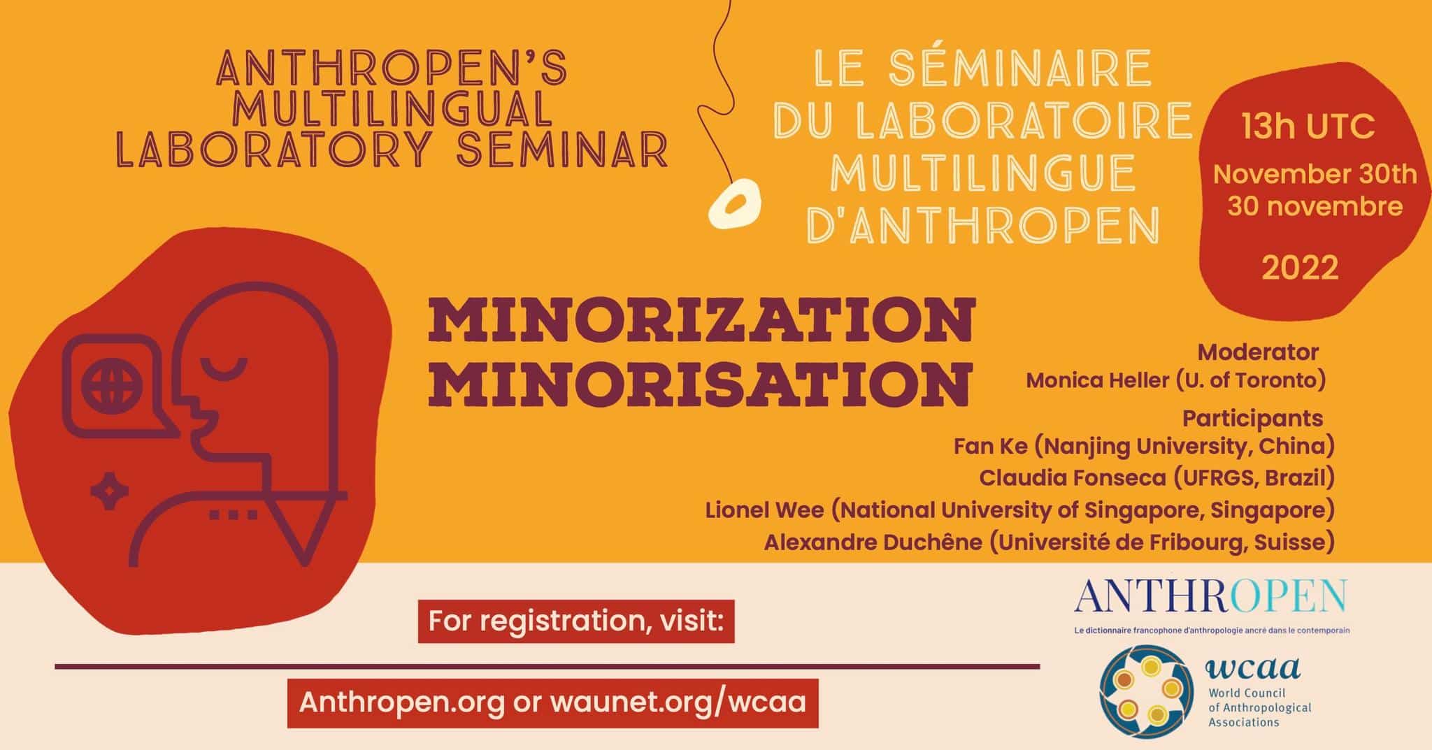Séminaires 2022-2023 du laboratoire multilingue d’Anthropen – séance « Minorisation »