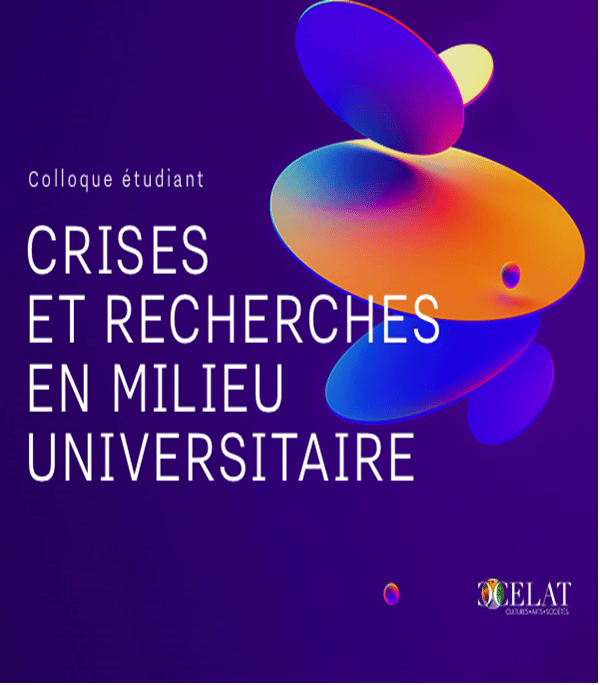 Nous sommes heureux-ses de vous transmettre l’appel à communications du prochain colloque étudiant du CELAT, sur la thématique Crises et recherches en milieu universitaire. Le colloque se tiendra le lundi 24 et le mardi 25 avril 2023 à l’Université du Québec à Montréal. Autant les membres du CELAT que les personnes externes intéressées par cette thématique sont invité-es à soumettre une proposition avant le 24 mars 2023 à l’adresse suivante: colloquecelat2023@outlook.com. Pour plus de détails, veuillez consulter l’appel à communications complet. Au plaisir de lire vos propositions!