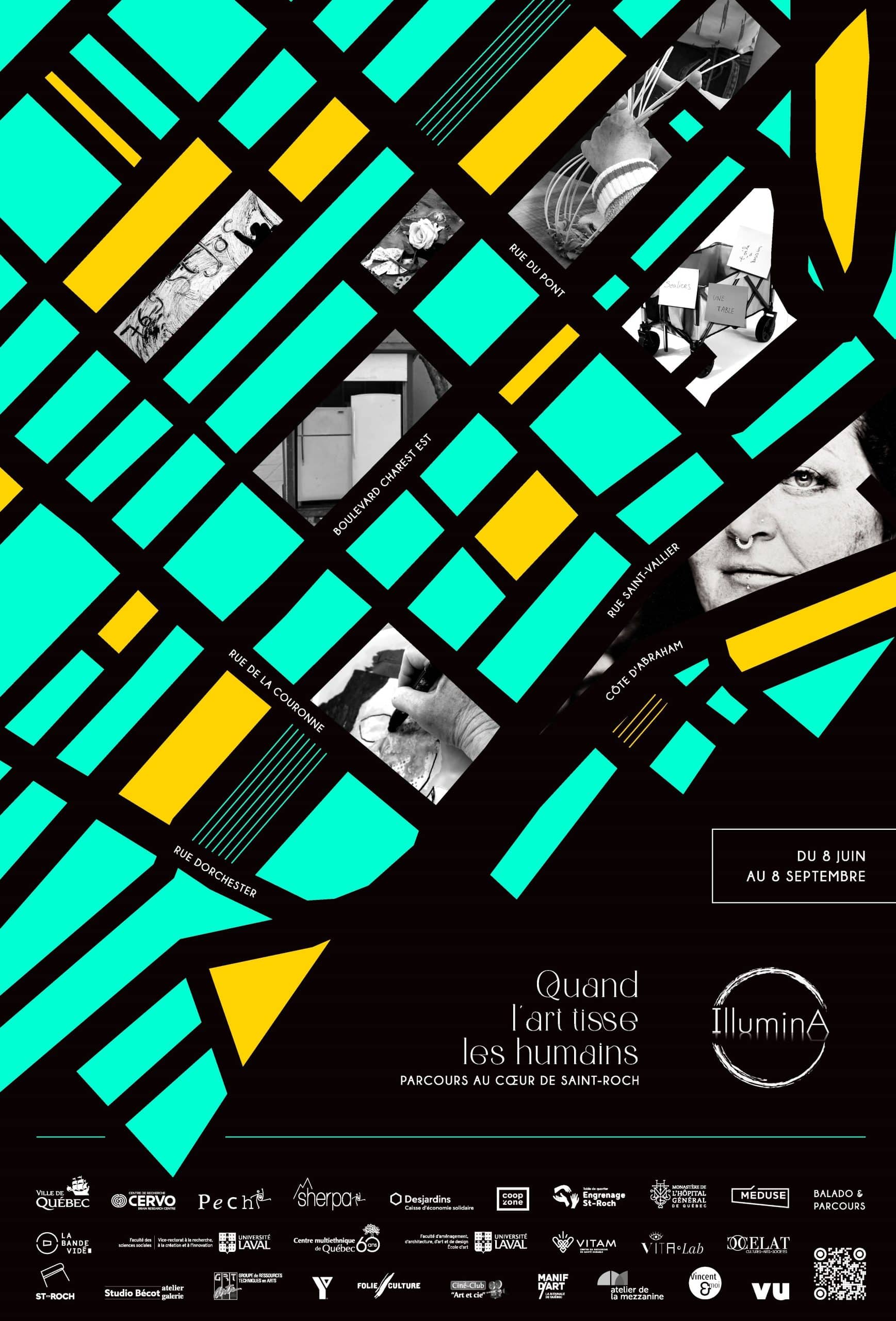 Le projet Illumina, auquel participent nos membres Francine Saillant et Célia Forget, consiste en une action multidimensionnelle et territoriale située dans le quartier Saint-Roch. Par divers ateliers de dialogue et d’art social tenus à l’hiver et au printemps 2023, tout un maillage s’est mis en place entre milieux de recherche et organismes communautaires et culturels du quartier en vue de la réalisation de cette exposition d’art et de solidarité. Le public est invité à vivre ce parcours, présenté du 8 juin au 8 septembre 2023, à travers une série d’œuvres collaboratives réalisées avec plus de 170 participant-es de groupes communautaires et une équipe rassemblant plus de 30 personnes. Sept stations présentant ces œuvres se déploient du boulevard Langelier jusqu’à la rue du Pont. La station Méduse comprend notamment des portraits photographiques réalisés par notre membre étudiant Kesler Bien-Aimé et (re)créés par des artistes québécois-es. Le public est également invité à écouter le balado À crocs de Saint-Roch et à assister aux évènements ponctuels inscrits dans la programmation d’Illumina. Pour tous les détails, vous pouvez suivre la page Illumina St-Roch.