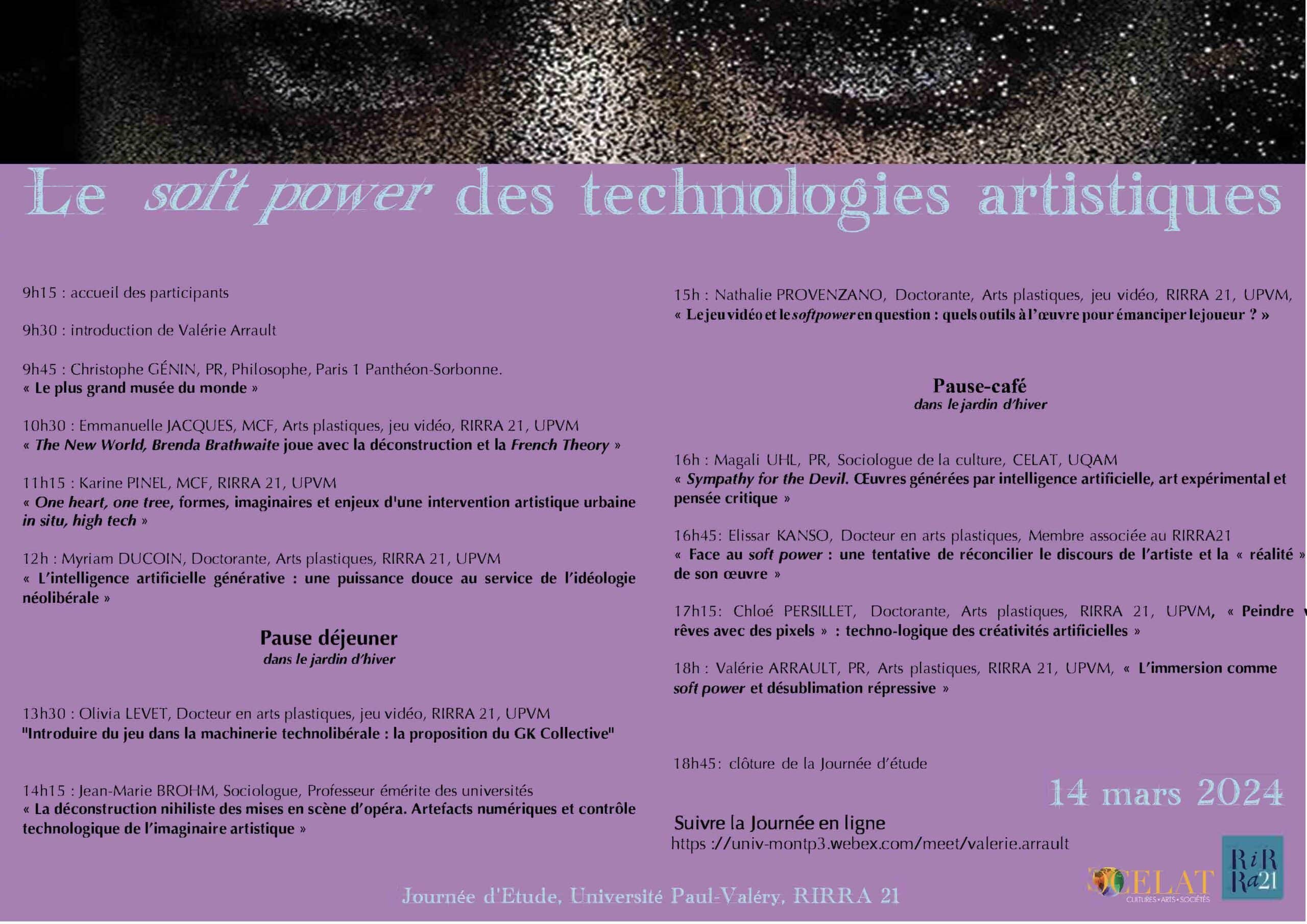 Renseignements : https://www.univ-montp3.fr/fr/evenements/le-soft-power-des-technologies-artistiques