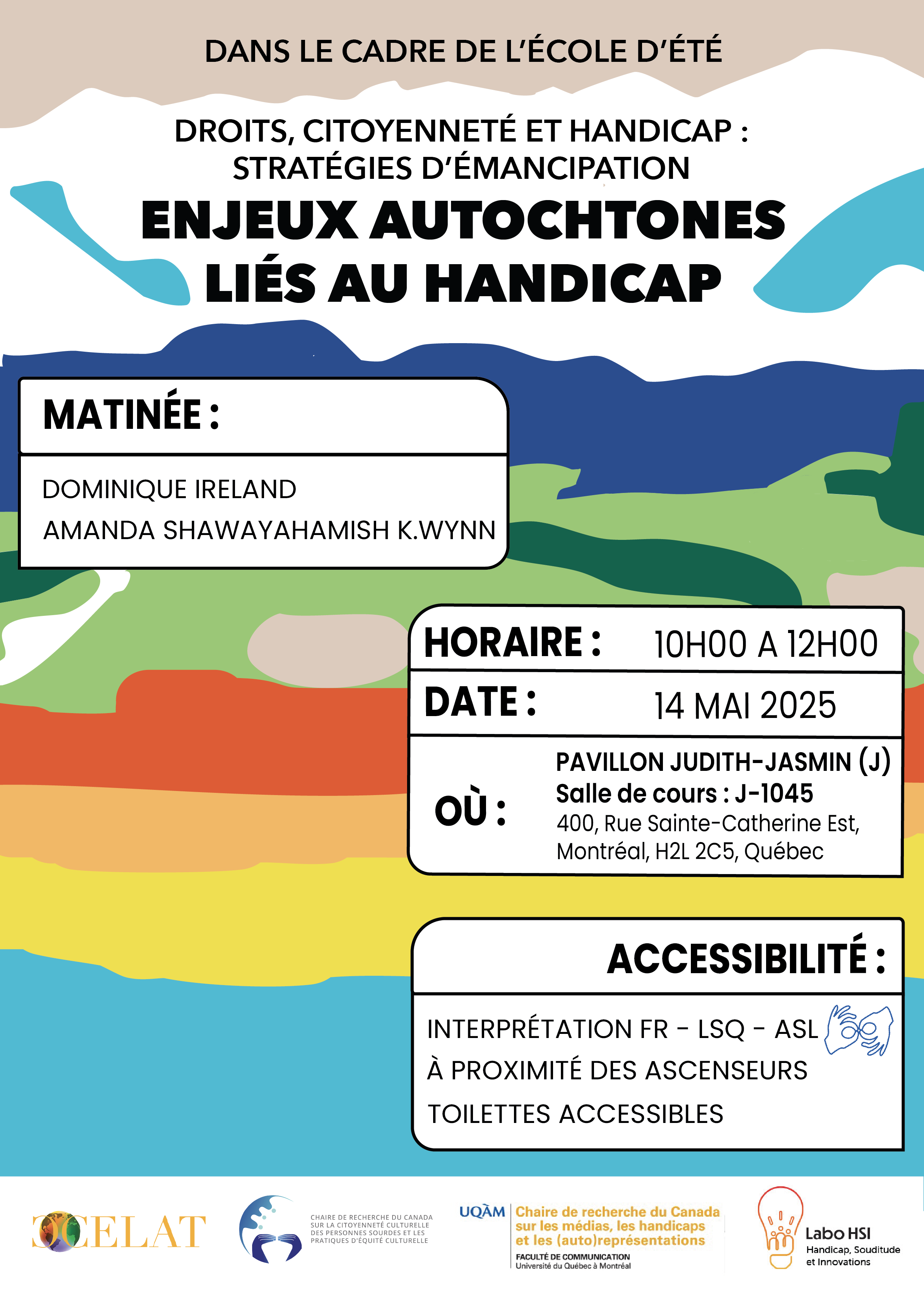 - Matinée sur les enjeux autochtones liés au handicap et à la sourditude : 14 mai, 10h à 12 h