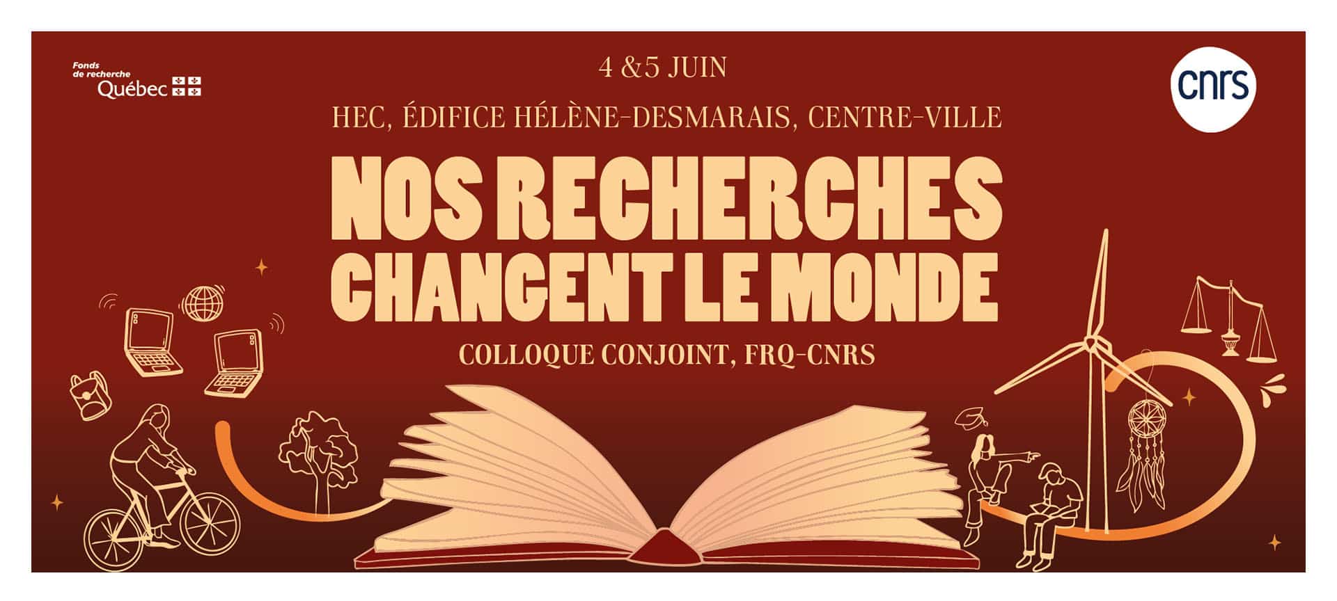 Le Fonds de recherche du Québec (FRQ) et le Centre national de la recherche scientifique (CNRS) vous invitent à prendre part au colloque Nos recherches changent le monde, qui se tiendra les 4 et 5 juin 2025, à HEC Montréal (édifice Hélène-Desmarais) et en ligne. Ce rendez-vous réunira des intervenant-es de renom d’ici et d’ailleurs autour des grandes transformations et des enjeux en sciences sociales et humaines, arts et lettres (SSHAL). Au programme : discussions sur les méthodologies innovantes (recherche participative, recherche-création), réflexions sur l’impact des nouvelles technologies dans la production et la diffusion des savoirs, et analyse des obstacles à la recherche. L’événement mettra en valeur le rôle central des SSHAL dans les démarches intersectorielles et leur capacité à éclairer les grands enjeux de société, en période de crise comme en contexte de changement durable.