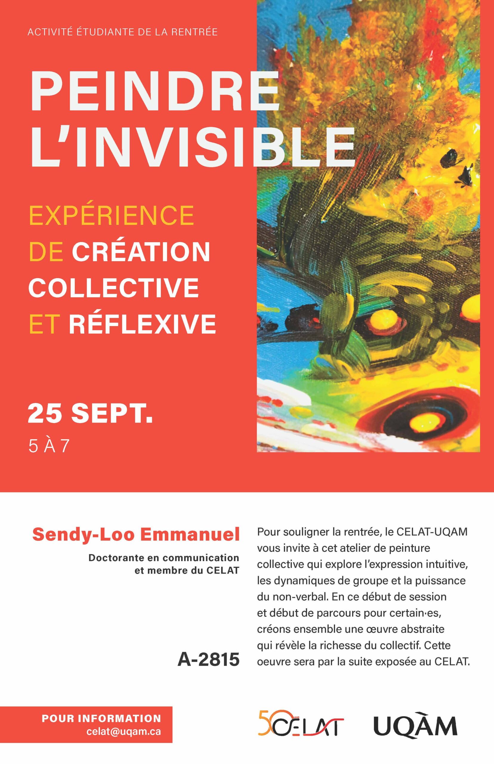 • Activité étudiante de la rentrée du CELAT-UQAM : atelier « Peindre l’invisible : expérience de création collective et réflexive »