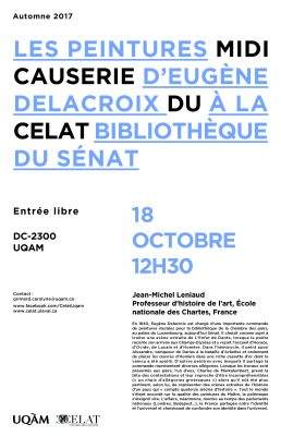 Mercredi 18 octobre, Jean-Michel Leniaud, professeur d’histoire de l’art à l’École nationale des Chartes (France) et titulaire de la Chaire mobile du CELAT, interviendra dans le cadre d’un midi-causerie au CELAT-UQAM. Sa présentation, intitulée « Les peintures d’Eugène Delacroix à la […]