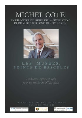 Le 31 octobre 2017, à 18h, le CELAT-UQAM accueillera Michel Côté, ex-directeur du Musée de la civilisation et du Musée des confluences à Lyon pour une conférence intitulée « Les musées, points de bascules. Tendances, enjeux et défis pour les musées […]