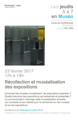 Les Études supérieures en muséologie vous invitent à la deuxième séance de Les Jeudis 5 à 7 en muséo! [Quoi] Une conférence par mois par un.e muséologue qui nous parlera de sa pratique professionnelle, ses projets, ses expériences! Une occasion unique de rencontrer des […]