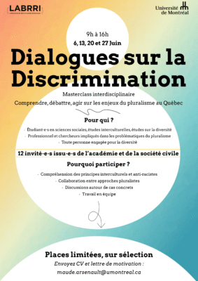Depuis 2021, l’équipe du Laboratoire de recherche sur les relations interculturelles (LABRRI), dirigé par notre membre Bob White, explore les tensions, convergences et complémentarités entre deux grandes approches de la pensée pluraliste au Québec : l’interculturalisme et l’antiracisme. Dans le cadre du projet Dialogues […]