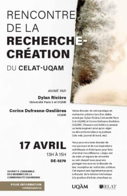 *Merci de noter que l’atelier se déroulera dans la salle DE-5270 de l’UQAM. Les personnes intéressées par la recherche-création sont invité-es à discuter de leur pratique lors d’un atelier en présentiel animé par nos membres Dylan Rivière (Université Paris 3 […]
