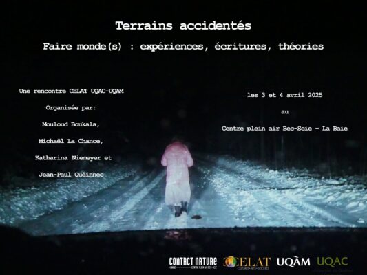 Nos membres Mouloud Boukala, Michaël La Chance, Katharina Niemeyer et Jean-Paul Quéinnec organisent un atelier CELAT-UQAM-UQAC avec des personnes étudiantes en recherche-création sur le thème Terrains accidentés. Faire monde(s) : expériences, écritures, théories les 3 et 4 avril 2025 au […]