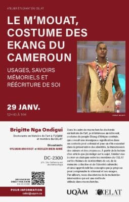 L’atelier étudiant « Le m’mouat, costume des Ekang du Cameroun. Usages, savoirs mémoriels et réécriture de soi », organisé par notre membre Brigitte Nga Ondigui, doctorante en histoire de l’art à l’UQAM, dans le cadre de sa bourse de mi-parcours […]