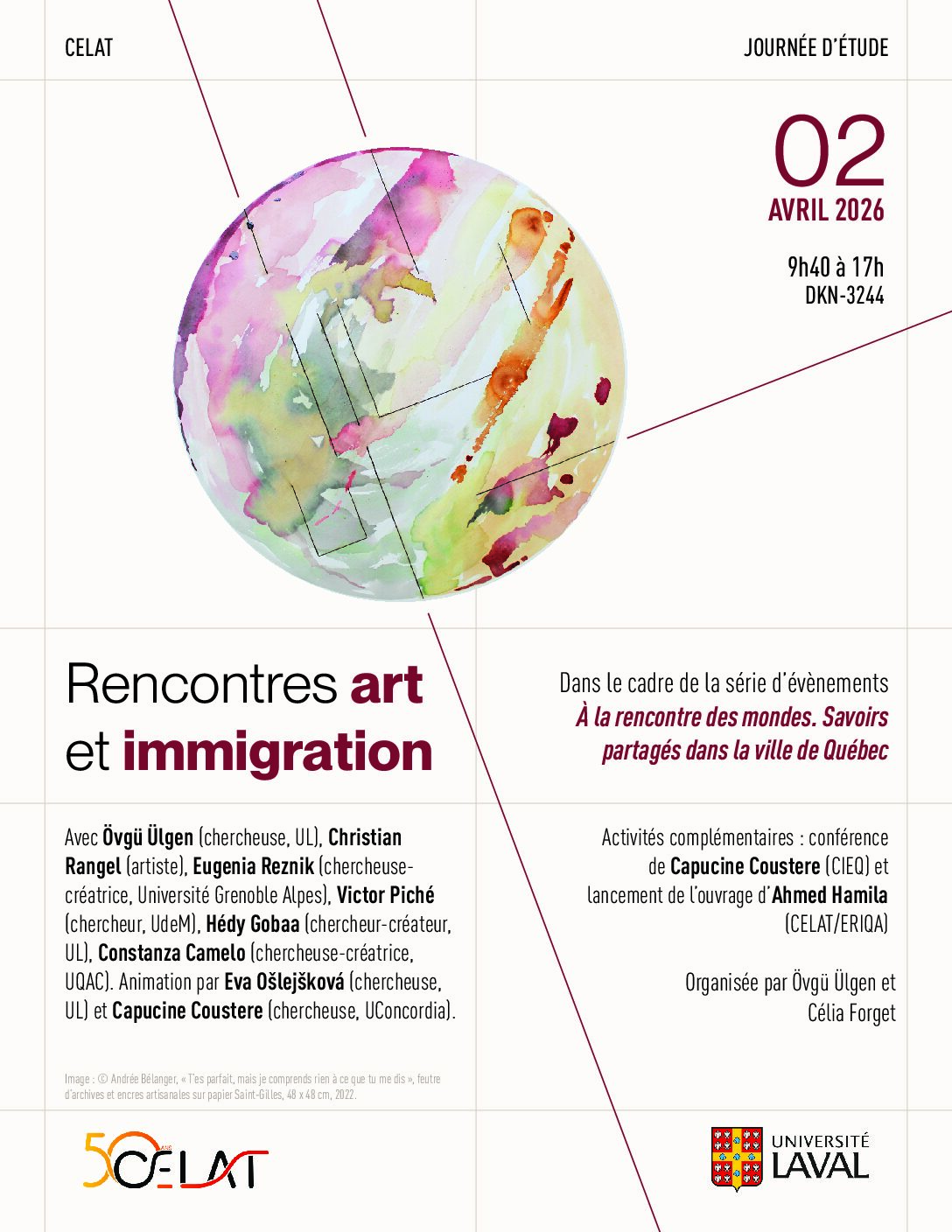 Dans le cadre de la série d’évènements À la rencontre des mondes. Savoirs partagés dans la ville de Québec, le CELAT est heureux de vous inviter à la toute première activité de cette programmation : la journée d’étude Rencontres art […]