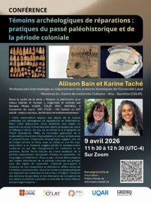 L’IPAC, le CELAT et le GRIDEQ ont le plaisir de vous convier à la conférence « Témoins archéologiques de réparations : pratiques du passé paléohistorique et de la période coloniale », qui sera présentée par nos membres Allison Bain et Karine Taché, […]