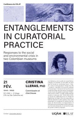 Le CELAT vous invite à la conférence « Entanglements in curatorial practice. Responses to the social and environmental crisis in two Colombian museums » que la commissaire et chercheuse Cristina Lleras présentera le mercredi 21 février 2024 au CELAT-UQAM (salle […]