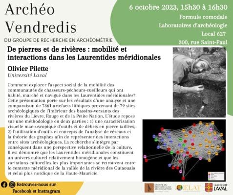 Lors du prochain Archéo-vendredi, notre membre étudiant Olivier Pilette présentera la conférence « De pierres et de rivières : mobilité et interactions dans les Laurentides méridionales » le 6 octobre à 15 h 30 dans la salle 627 des Laboratoires […]
