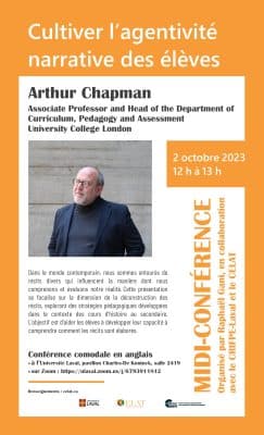 Nous sommes ravi-es d’accueillir Arthur Chapman, professeur agrégé et directeur du Department of Curriculum, Pedagogy and Assessment à l’University College London, à l’occasion du midi-conférence « Cultiver l’agentivité narrative des élèves », organisé par notre membre Raphaël Gani, en collaboration avec le […]