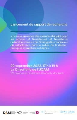 Afin de souligner la parution du rapport de recherche La mise en œuvre des mesures d’équité pour les artistes et travailleuses et travailleurs culturel.le.s issu.e.s de l’immigration, racisé.e.s ou autochtones dans le milieu de la danse : pratiques exemplaires et […]