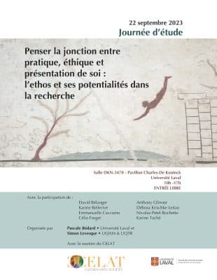 Organisée par nos membres Pascale Bédard et Simon Levesque, la journée d’étude Penser la jonction entre pratique, éthique et présentation de soi : l’ethos et ses potentialités dans la recherche se tiendra le vendredi 22 septembre, de 10 h à […]