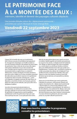Présentée par Lucie K. Morisset (CELAT) et Anne-Solange Muis, la journée d’étude Le patrimoine face à la montée des eaux : mémoire, identité et devenir des paysages culturels déplacés se tiendra le vendredi 22 septembre 2023 au Théâtre Sainte-Catherine (264, rue […]