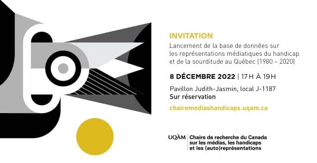 La Chaire de recherche du Canada sur les médias, les handicaps et les (auto)représentations, dont Mouloud Boukala (CELAT) est le responsable, vous convie au lancement de la base de données sur les représentations médiatiques du handicap et de la sourditude […]