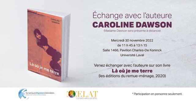 Nous avons le grand plaisir de vous inviter à un événement d’échange avec Caroline Dawson, l’auteure du magnifique roman Là où je me terre, paru en 2020 aux Éditions du remue-ménage. L’événement aura lieu le mercredi 30 novembre, de 11h45 […]