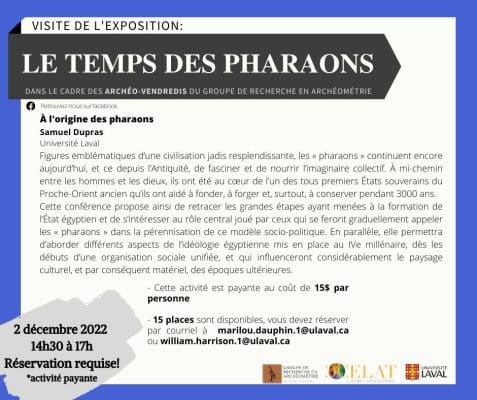 Le Groupe de recherche en archéométrie organise une visite hors campus au Musée de la civilisation le vendredi 2 décembre, de 14 h 30 à 17 h! Les participant-es auront la chance d’assister à une présentation de Samuel Dupras, chargé […]
