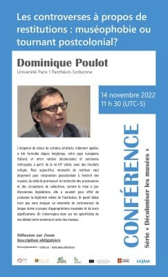 *Consultez la vidéothèque du CELAT pour visionner la conférence. Dans le cadre de la série « Décoloniser les musées », vous êtes invité-es à assister à la conférence « Les controverses à propos de restitutions : muséophobie ou tournant postcolonial? […]