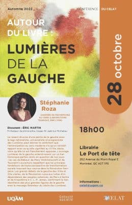 Le CELAT vous invite à une rencontre avec Stéphanie Roza (CNRS), qui présentera une conférence autour de son livre Lumières de la gauche (Éditions de la Sorbonne, 2022) le vendredi 28 octobre 2022 à 18 h à la librairie Le […]