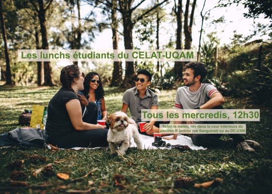 Au trimestre d’automne 2022, les membres étudiant-es du CELAT-UQAM sont invité-es à se rassembler tous les mercredis à 12h30 pour dîner et discuter dans la cour intérieure du pavillon R de l’UQAM (entrée sur la rue Sanguinet au nord de […]