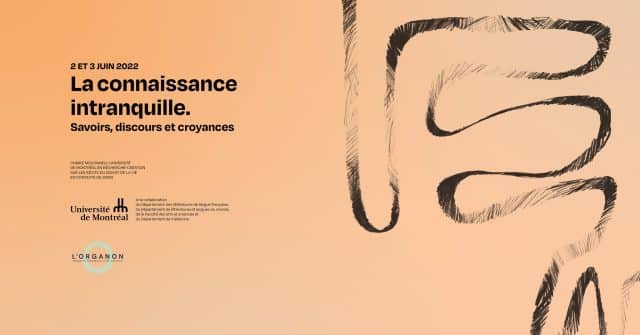 L’Organon (Chaire McConnell-Université de Montréal en recherche-création sur les récits du don et de la vie en contexte de soins) vous invite au colloque La connaissance intranquille. Savoirs, discours et croyances, qui se tiendra les 2 et 3 juin à […]