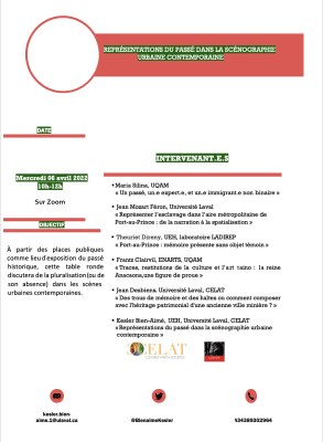 Dans le cadre de sa bourse de mi-parcours de 3e cycle du CELAT, Kesler Bien-Aimé, doctorant en ethnologie et patrimoine à l’Université Laval sous la direction de Laurier Turgeon, organise, le mercredi 6 avril 2022, de 10 h à 12 h, une table ronde […]