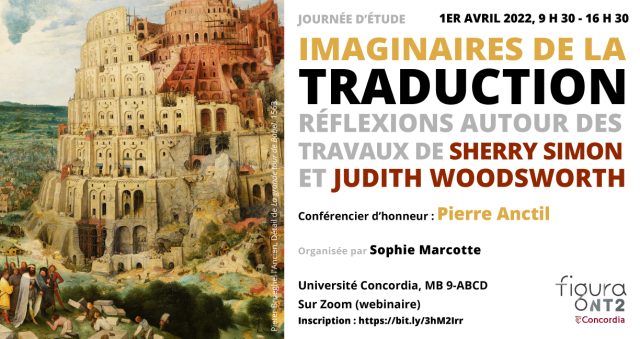 Organisée par Sophie Marcotte, la journée d’étude comodale Imaginaires de la traduction – Réflexions autour des travaux de Sherry Simon et Judith Woodsworth se déroulera le vendredi 1er avril 2022 à l’Université Concordia (salle MB 9-ABCD). Pierre Anctil (CELAT) présentera […]