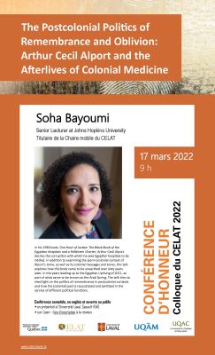 Le Centre de recherche Cultures – Arts – Sociétés a le plaisir de convier le public à la conférence inaugurale de son colloque 2022, qui sera présentée en anglais par Soha Bayoumi (Université Johns Hopkins), titulaire de la Chaire mobile […]