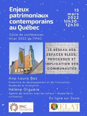 En collaboration avec notre centre, l’Institut du patrimoine culturel (IPAC) accueillera Ana-Laura Baz (directrice du développement et de l’innovation au Musée de la civilisation) et Hélène Giguère (agente de relation avec les milieux au Musée de la civilisation et membre […]