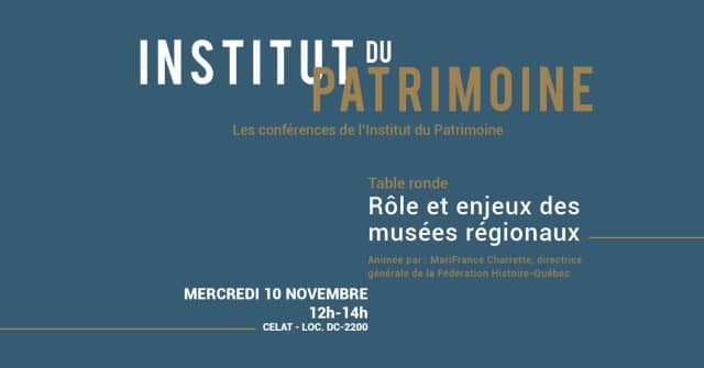 L’Institut du patrimoine de l’UQAM vous convie à la table ronde « Rôle et enjeux des musées régionaux » le mercredi 10 novembre 2021, de 12 h à 14 h. Animée par MariFrance Charrette, directrice générale de la Fédération Histoire Québec, l’activité […]