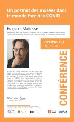 Mise à jour : la conférence peut être visionnée sur la chaîne YouTube du CELAT. Des sous-titres en français sont disponibles. *** Le vendredi 15 octobre 2021 à 11 h, François Mairesse présentera la conférence virtuelle « Un portrait des […]