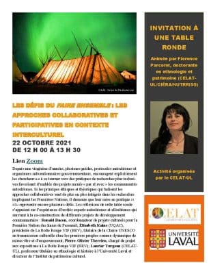 Le CELAT à l’Université Laval vous convie à la table ronde « Les défis du faire ensemble : les approches collaboratives et participatives en contexte interculturel », qui se tiendra le vendredi 22 octobre, de 12 h à 13 h 30, sur […]