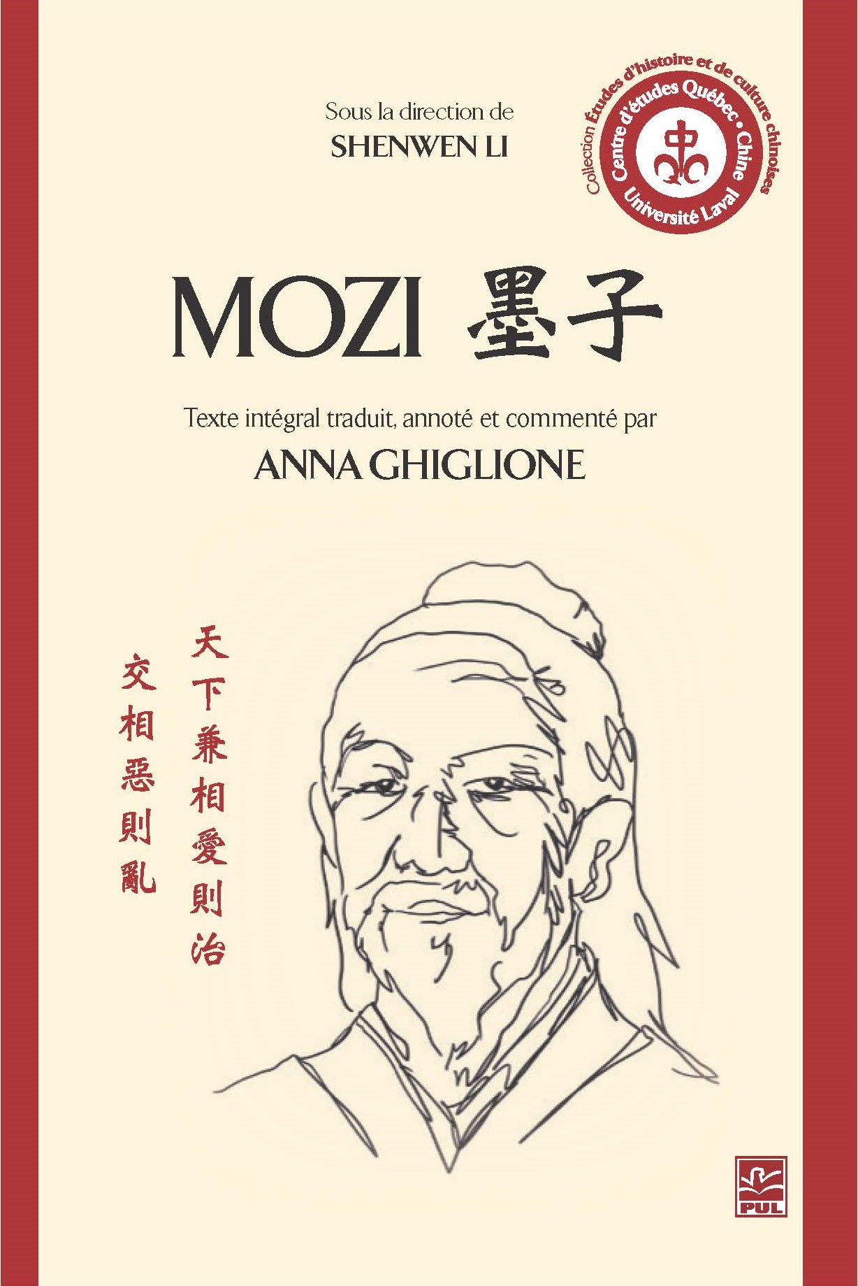 Une traduction française intégrale du Mozi par Anna Ghiglione, professeure de philosophie à l’Université de Montréal, sous la direction de monsieur Shenwen Li (CELAT) est parue en décembre dernier aux Presses de l’Université Laval.