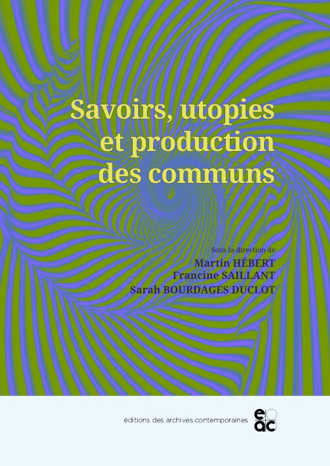 L’ouvrage Savoirs, utopies et production des communs, sous la direction de Martin Hébert, Francine Saillant (CELAT) et Sarah Bourdages Duclot, vient de paraître en libre accès aux Éditions des archives contemporaines. La publication comprend un chapitre sur les villes interculturelles signé par notre membre Bob White.