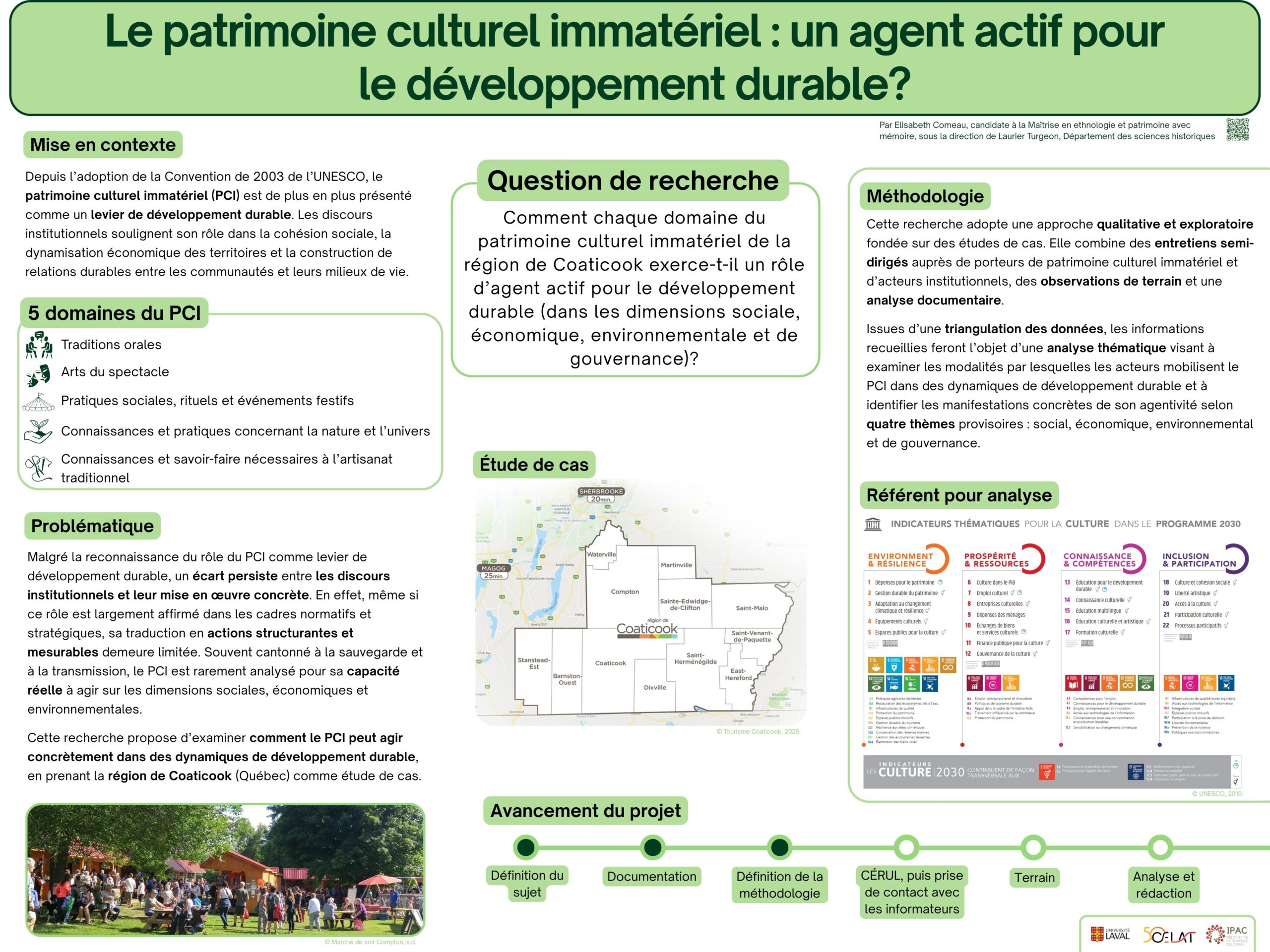 Présentation par affiche d’Elisabeth Comeau, « Le patrimoine culturel immatériel : un agent actif pour le développement durable? », récipiendaire du prix Coup de coeur du public