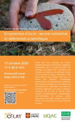 Les membres du CELAT sont invité-es à participer à l’atelier de recherche-création « Empreintes d’ocre : œuvre collective et référentiel scientifique », prévu le vendredi 17 octobre 2025, de 11 […]