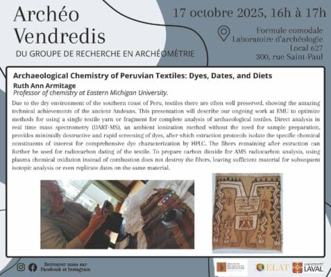 Le Groupe de recherche en archéométrie vous invite à une conférence en anglais de la professeure Ruth Ann Armitage (Eastern Michigan University) sur la chimie en archéologie dans l’étude des […]
