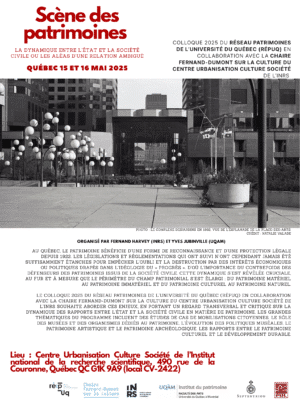 En collaboration avec la Chaire Fernand-Dumont sur la culture du Centre Urbanisation Culture Société de l’INRS, le Réseau Patrimoines de l’Université du Québec (RéPUQ) vous invite au colloque Scène des patrimoines. […]