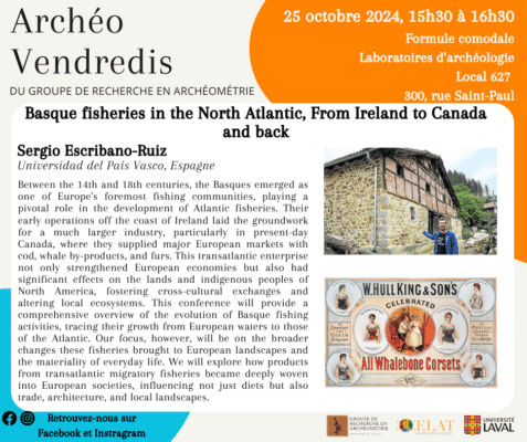 À l’occasion du prochain Archéo-vendredi, prévu le 25 octobre à 15 h 30, Sergio Escribano-Ruiz (Universidad del País Vasco, Espagne) présentera la conférence comodale « Basque fisheries in the North Atlantic, from […]