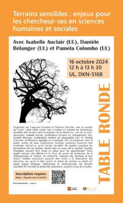 Le CELAT vous invite à assister à la table ronde « Terrains sensibles : enjeux pour les chercheur-ses en sciences humaines et sociales », qui se tiendra en présentiel uniquement […]